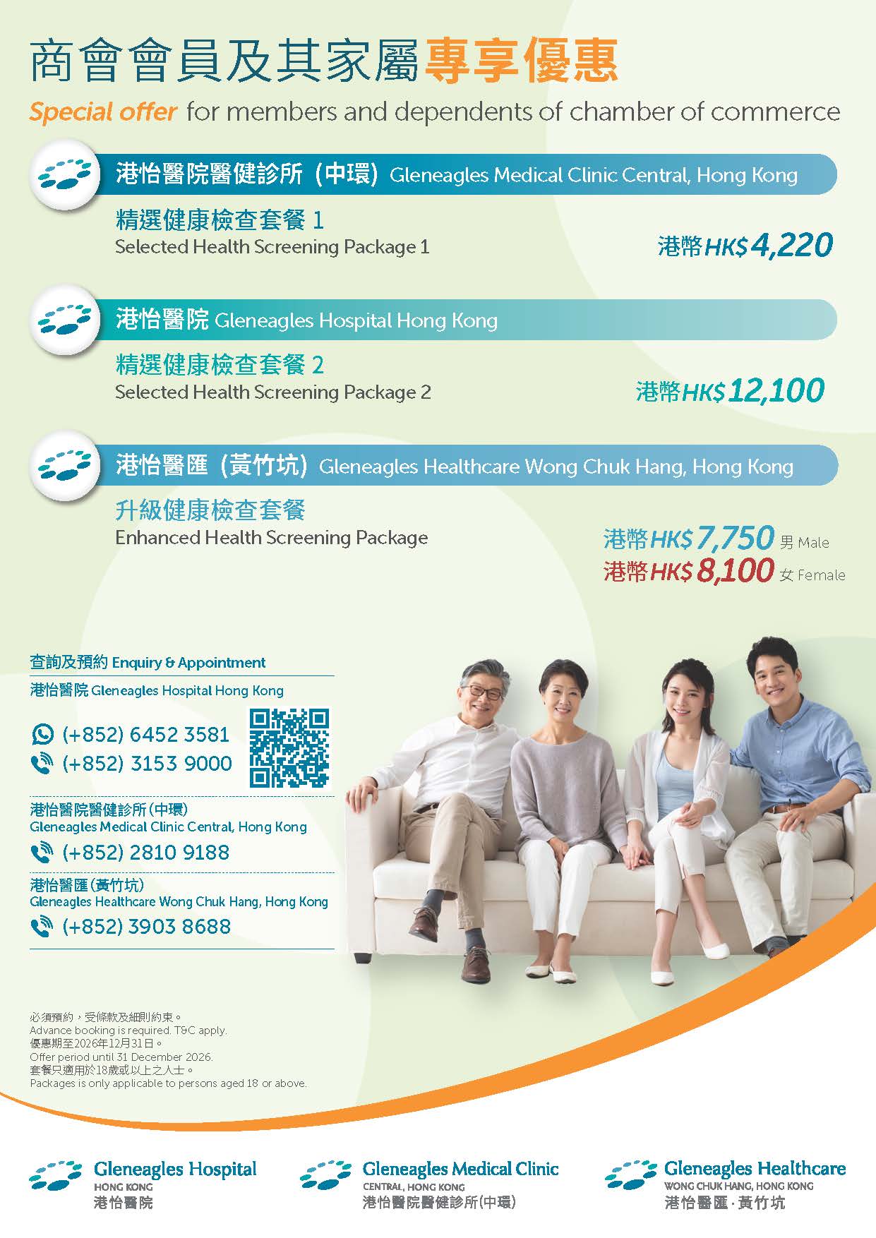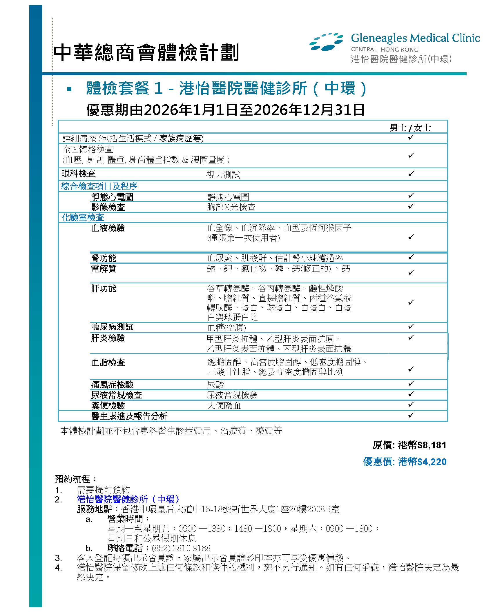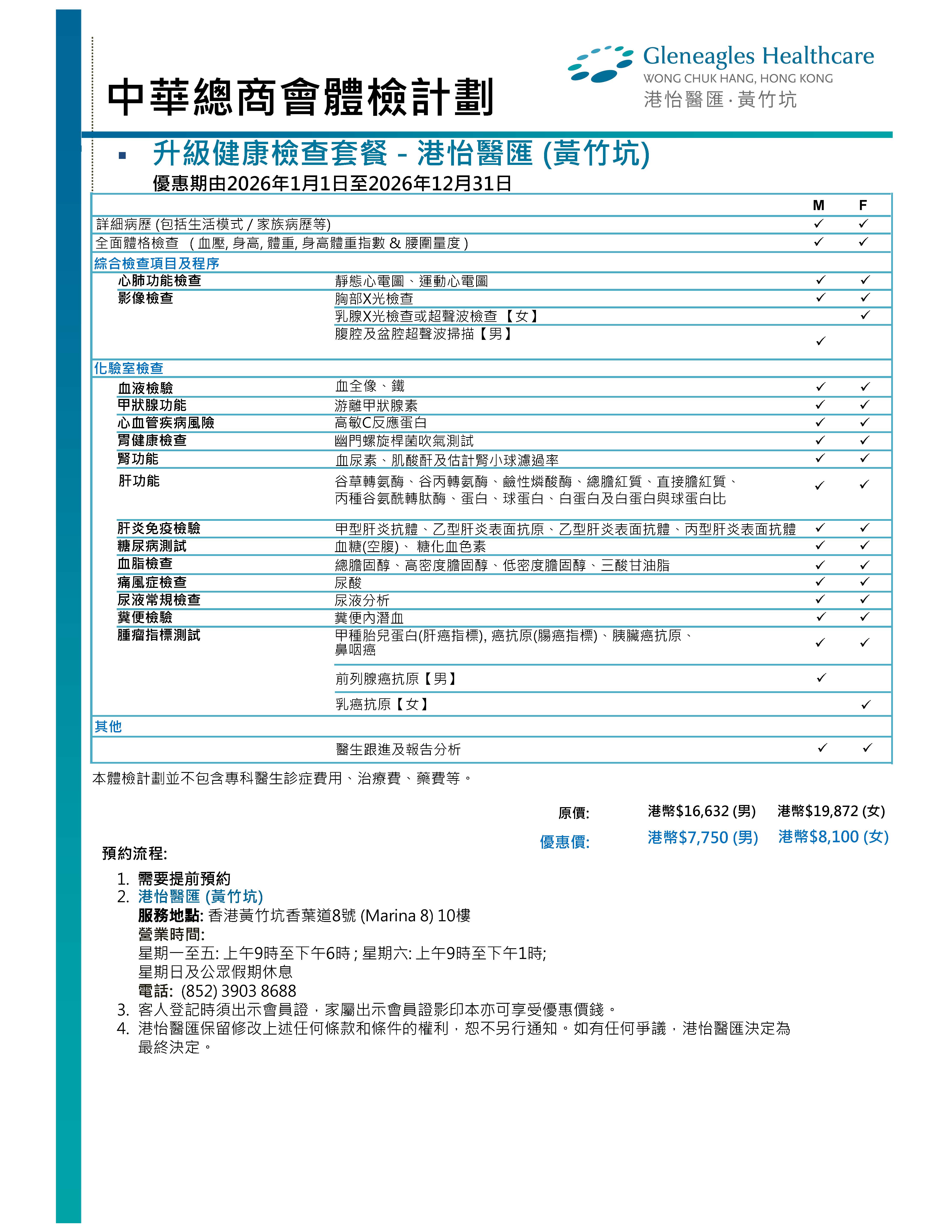 会员尊享港怡医院医健诊所(中环)、港怡医院及港怡医汇(黄竹坑)体检计划优惠