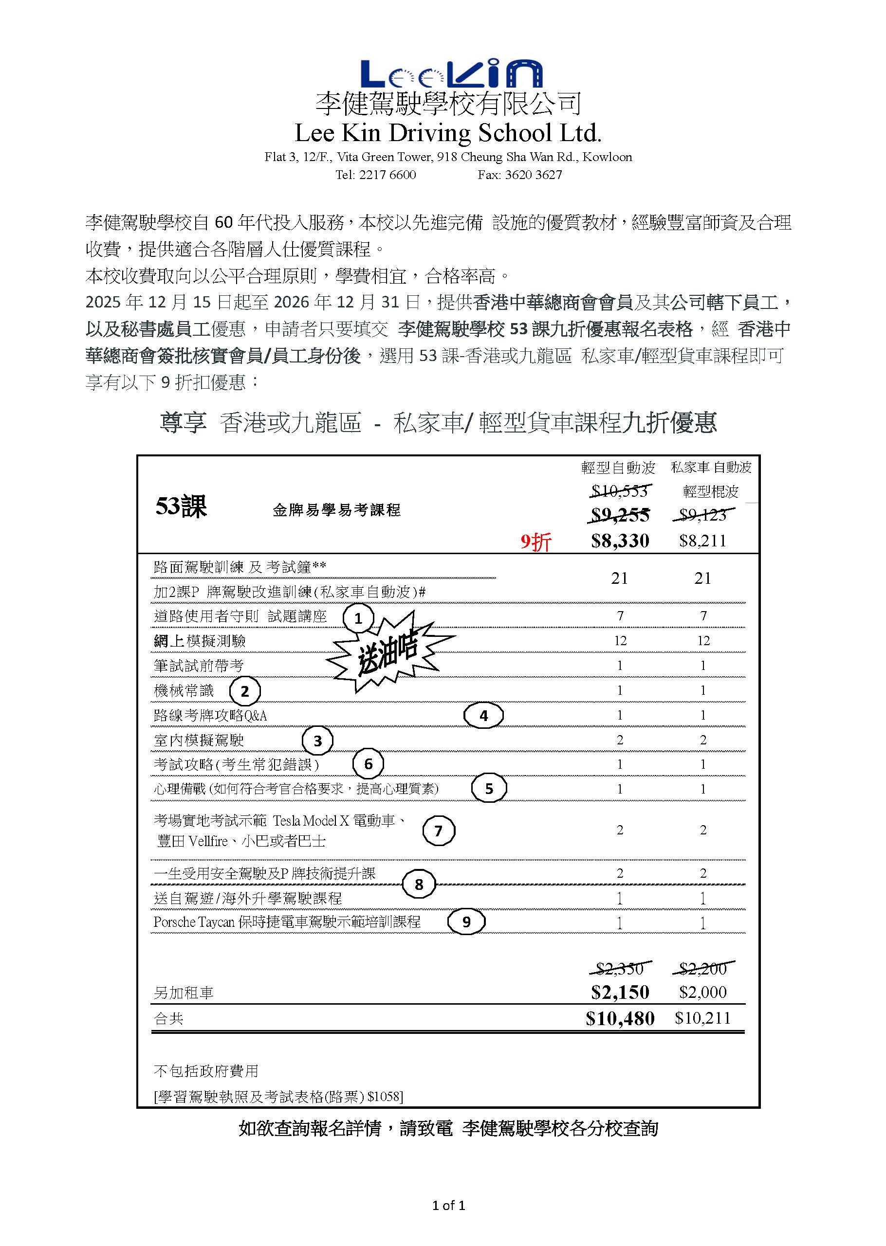 中总会员尊享李健驾驶学校私家车/轻型货车课程九折优惠