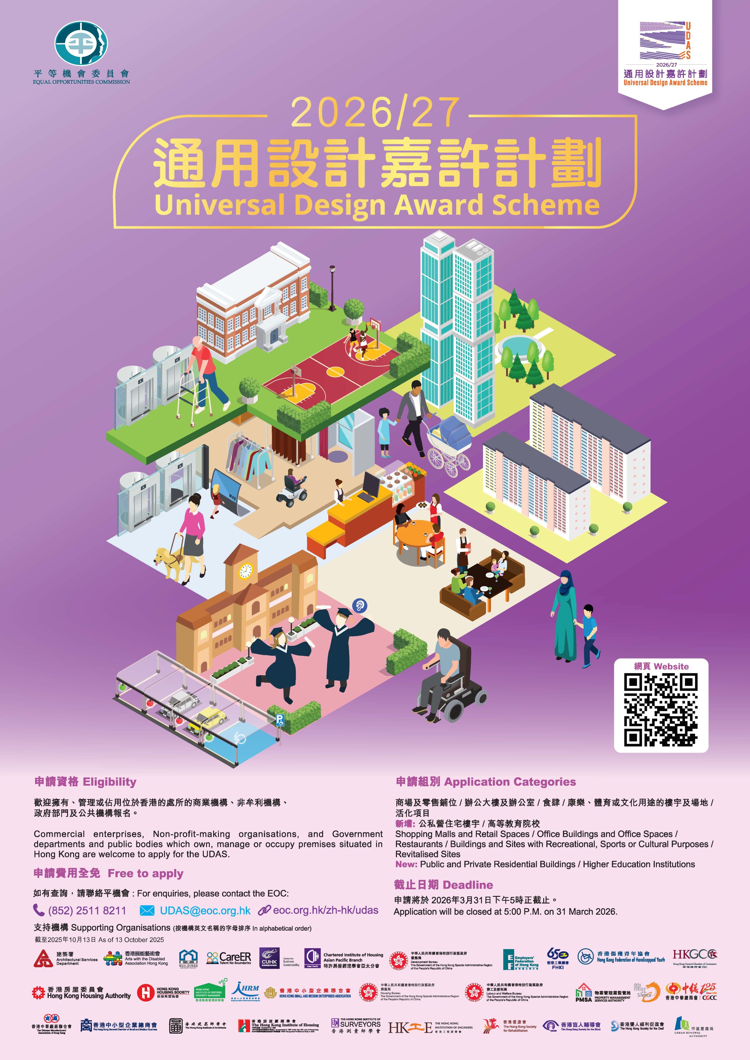 参加嘉许计划的费用全免。申请表格将附上通用设计措施的自我评估清单。截止申请日期為2026年3月31日。
