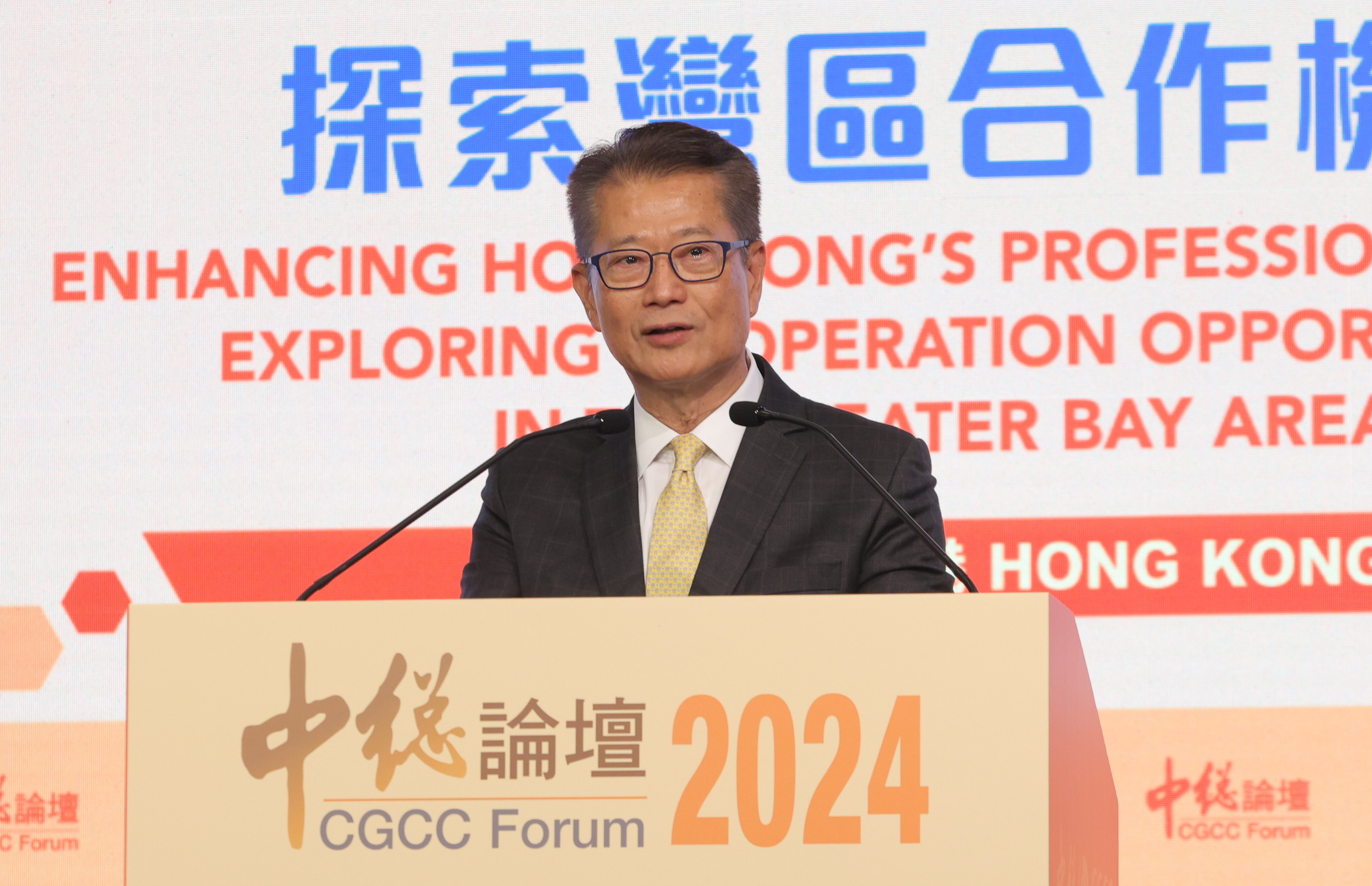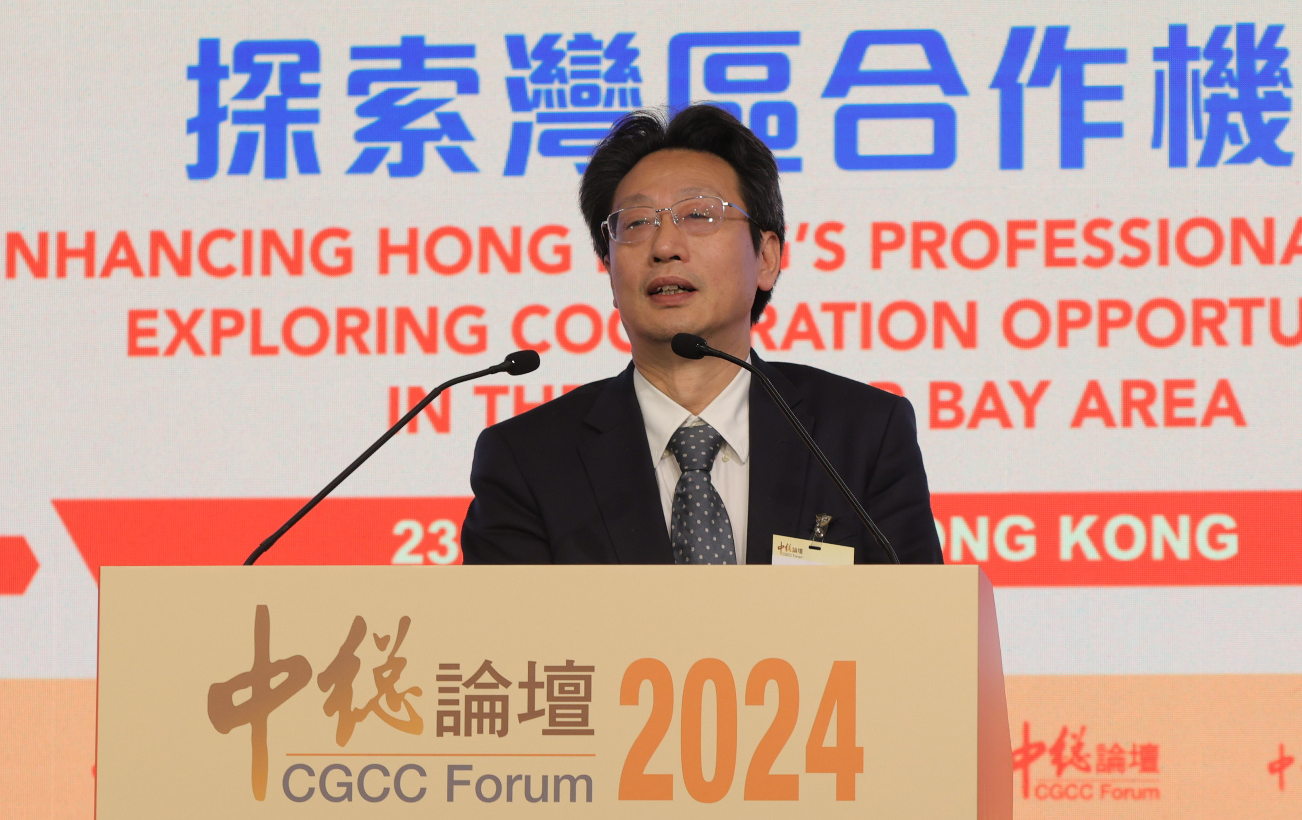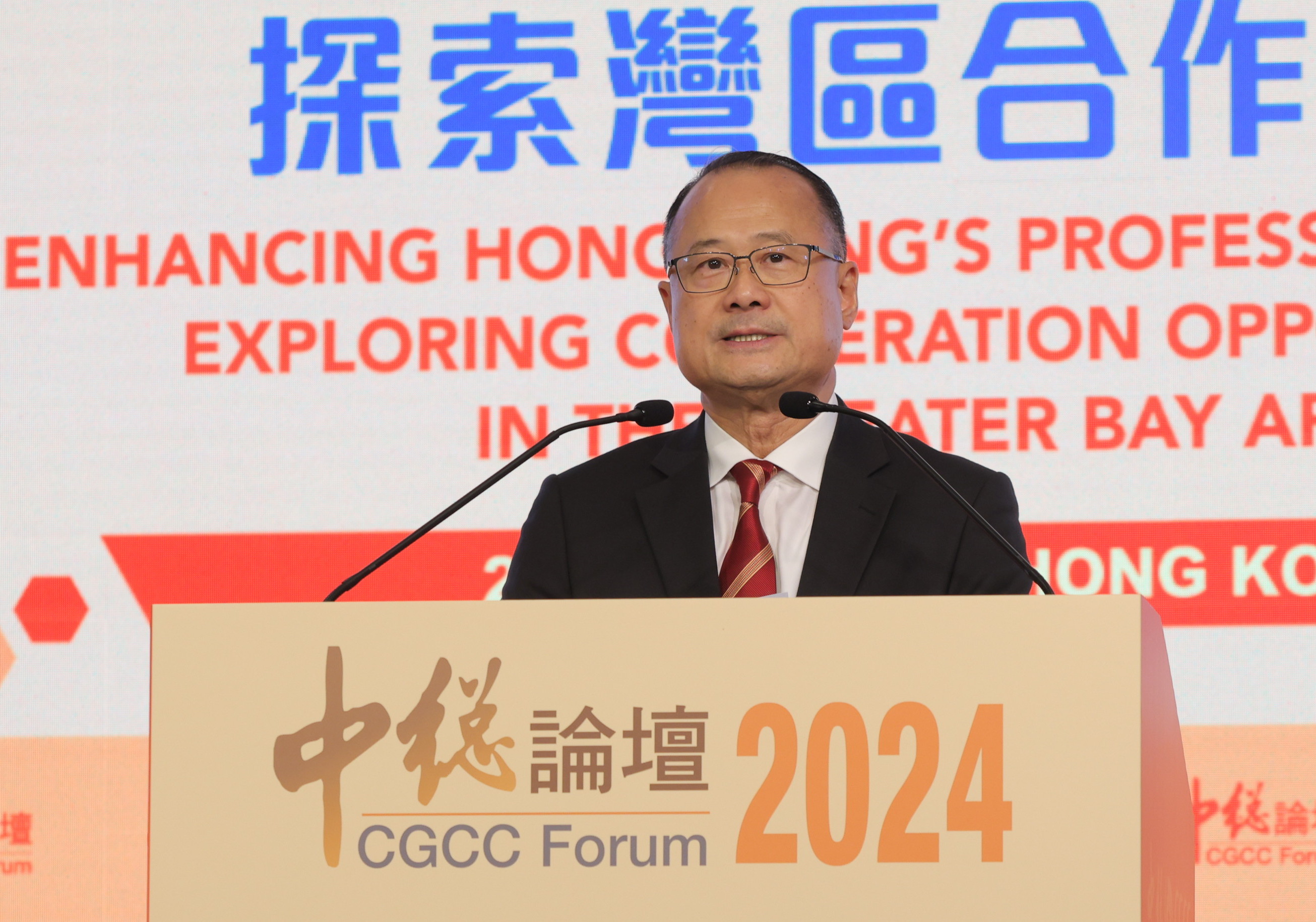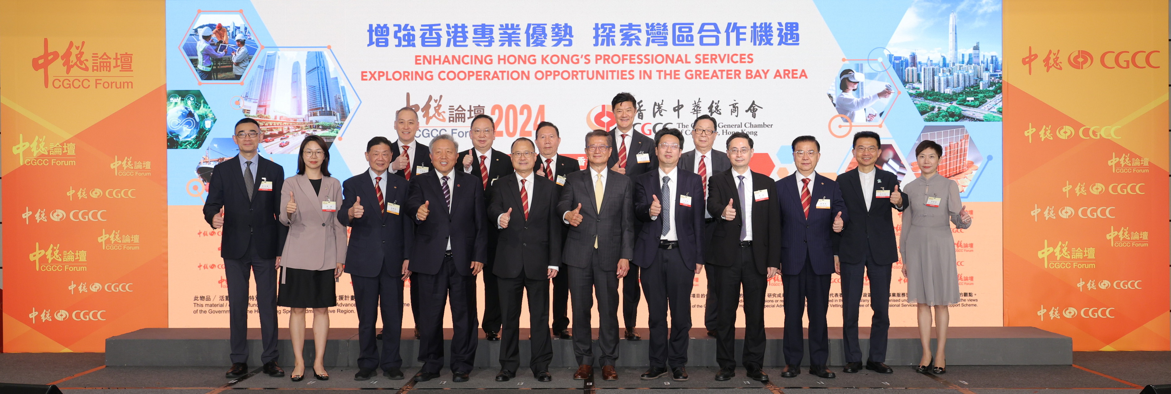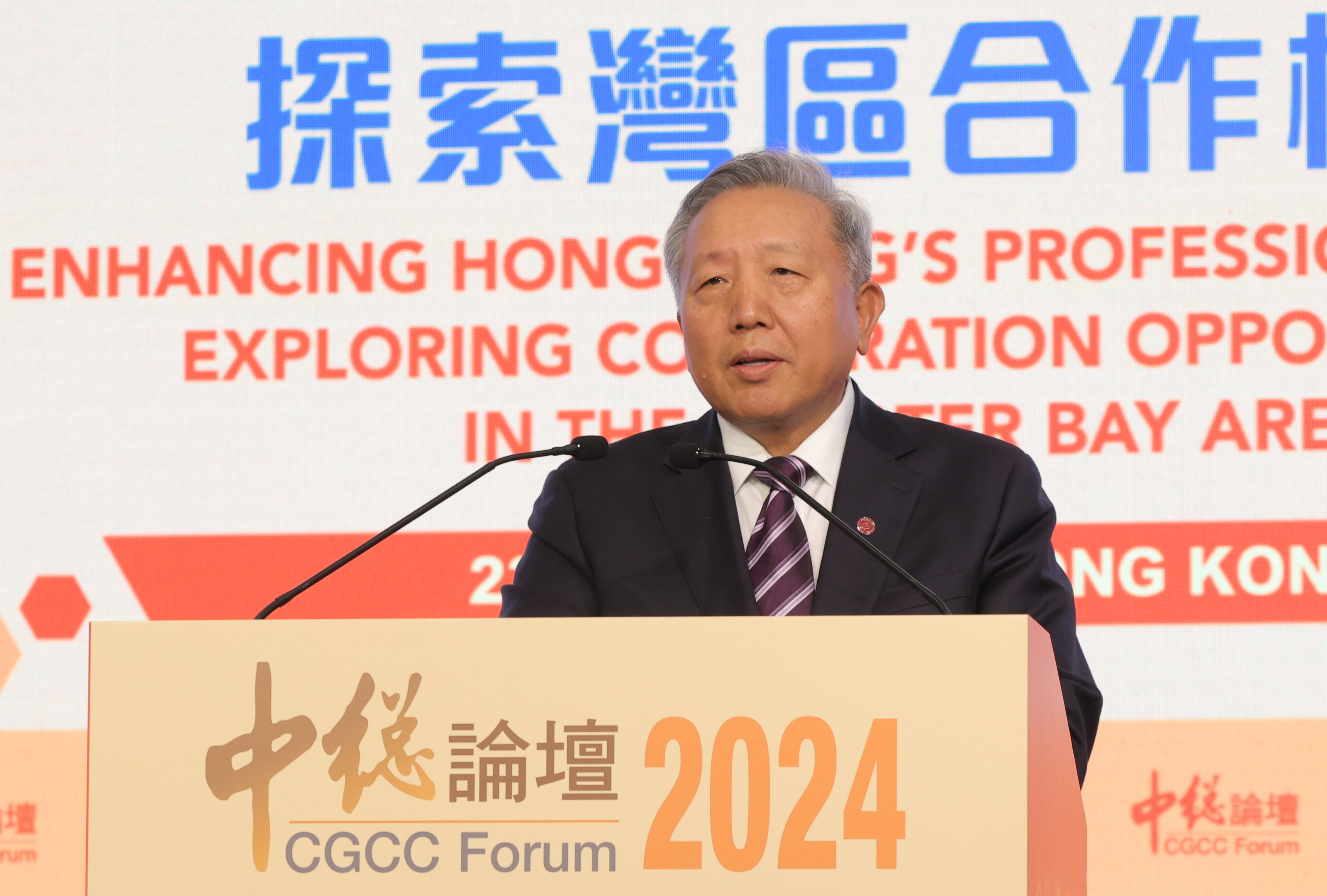 香港中华总商会今天(23日)举办“中总论坛2024”,以“增强香港专业优势 探索湾区合作机遇”為主题,邀请财政司陈茂波司长担任主旨演讲嘉宾,探讨环球经济局势与香港发展前景。中国社会科学院副院长王昌林教授、中国人民大学国家金融研究院院长吴晓求教授担任专题演讲嘉宾,分别从宏观及金融角度剖析粤港澳大湾区建设发展以及香港可担当的角色。