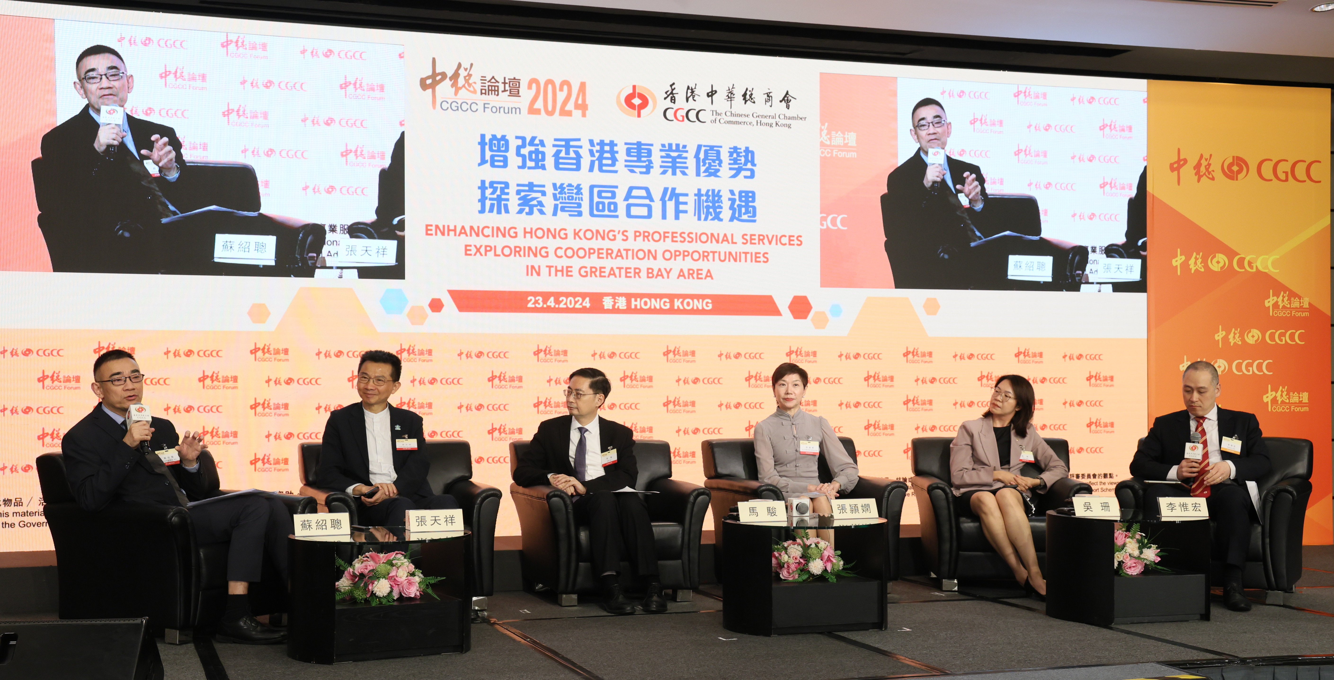 论坛并设对谈交流环节,邀请香港绿色金融协会主席及会长马骏、香港绿色建筑议会主席张天祥、一邦国际网上仲调中心主席苏绍聪、毕马威中国副主席及香港区首席合伙人张頴嫻,以及阿斯利康香港及澳门总经理、香港科研製药联会会长吴珊,就香港专业服务业如何支援大湾区发展建言献策。