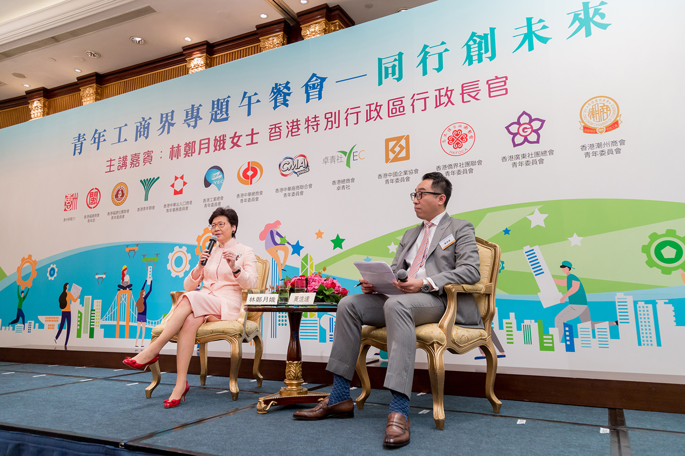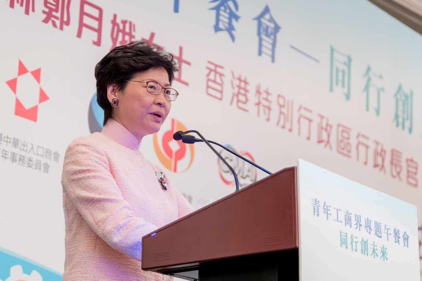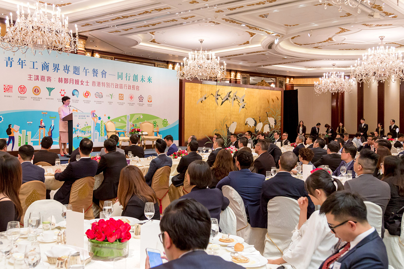香港特別行政區行政長官林鄭月娥日前出席由香港中華總商會青年委員會(下稱“中總青委會”)等13間工商青年團體合辦的“青年工商界專題午餐會—同行創未來”,闡述上任後第二份施政報告的主要內容,就土地房屋、多元經濟、青年政策等重點議題作深入講解,與現場逾200位工商界青年互動交流。