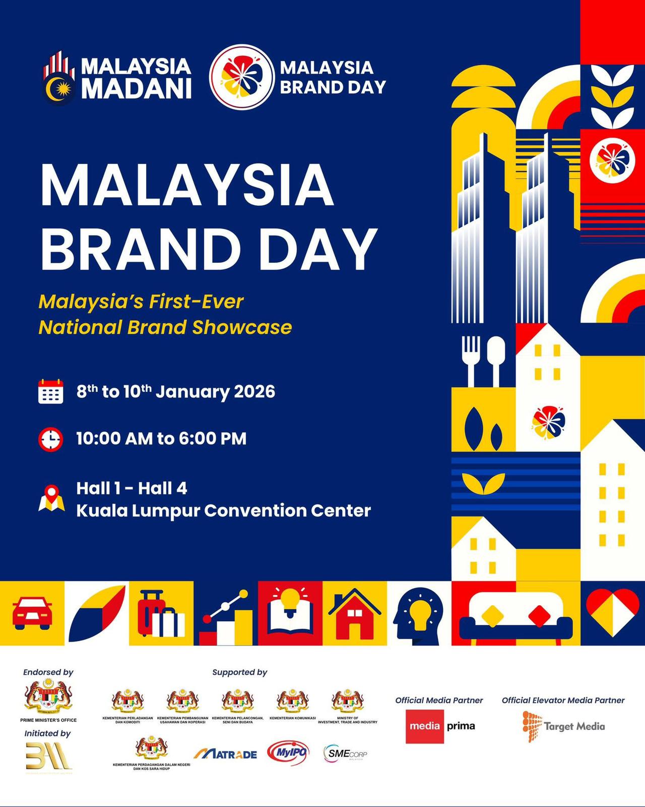 Malaysia Brand Day 2026 marks the first-ever national-scale exhibition and showcase platform dedicated to celebrating the excellence of Malaysia’s homegrown brands, businesses, and entrepreneurs. The event will feature over 300 exhibitors spanning 16 diverse sectors from across the country, offering a dynamic marketplace and interactive branding experience for participants and visitors alike.