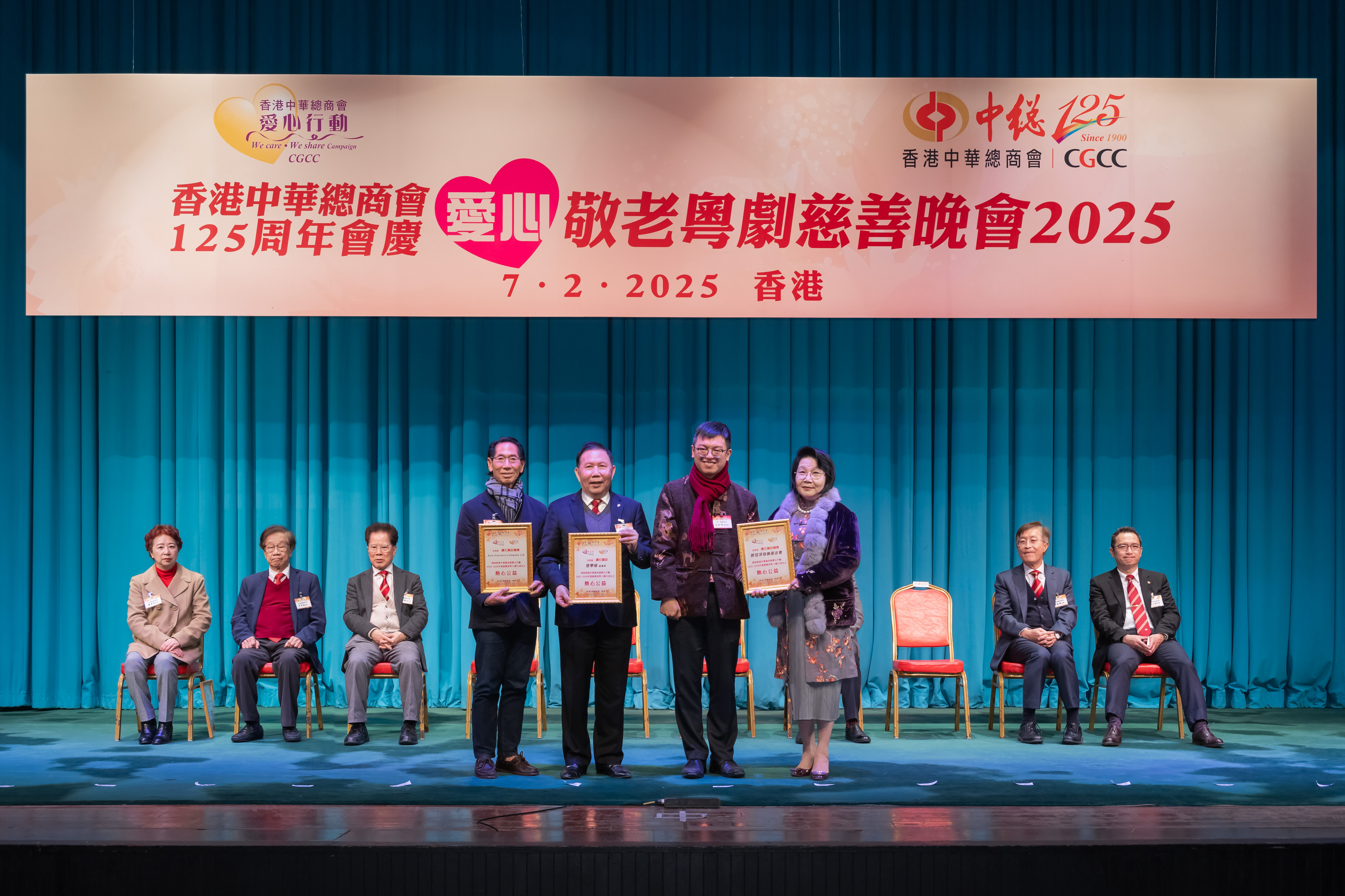 香港中華總商會(中總)於2月7日(正月初十)晚假北角新光戲院舉辦「125周年會慶 愛心敬老粵劇慈善晚會」,招待逾千位長者欣賞「鳴芝聲劇團」精彩粵劇演出,並為中總「愛心行動」籌募經費。勞工及福利局副局長何啟明應邀擔任主禮嘉賓,與中總公益事務委員會專責會長張學修、主席李德剛及長者一起欣賞演出、共賀新春。