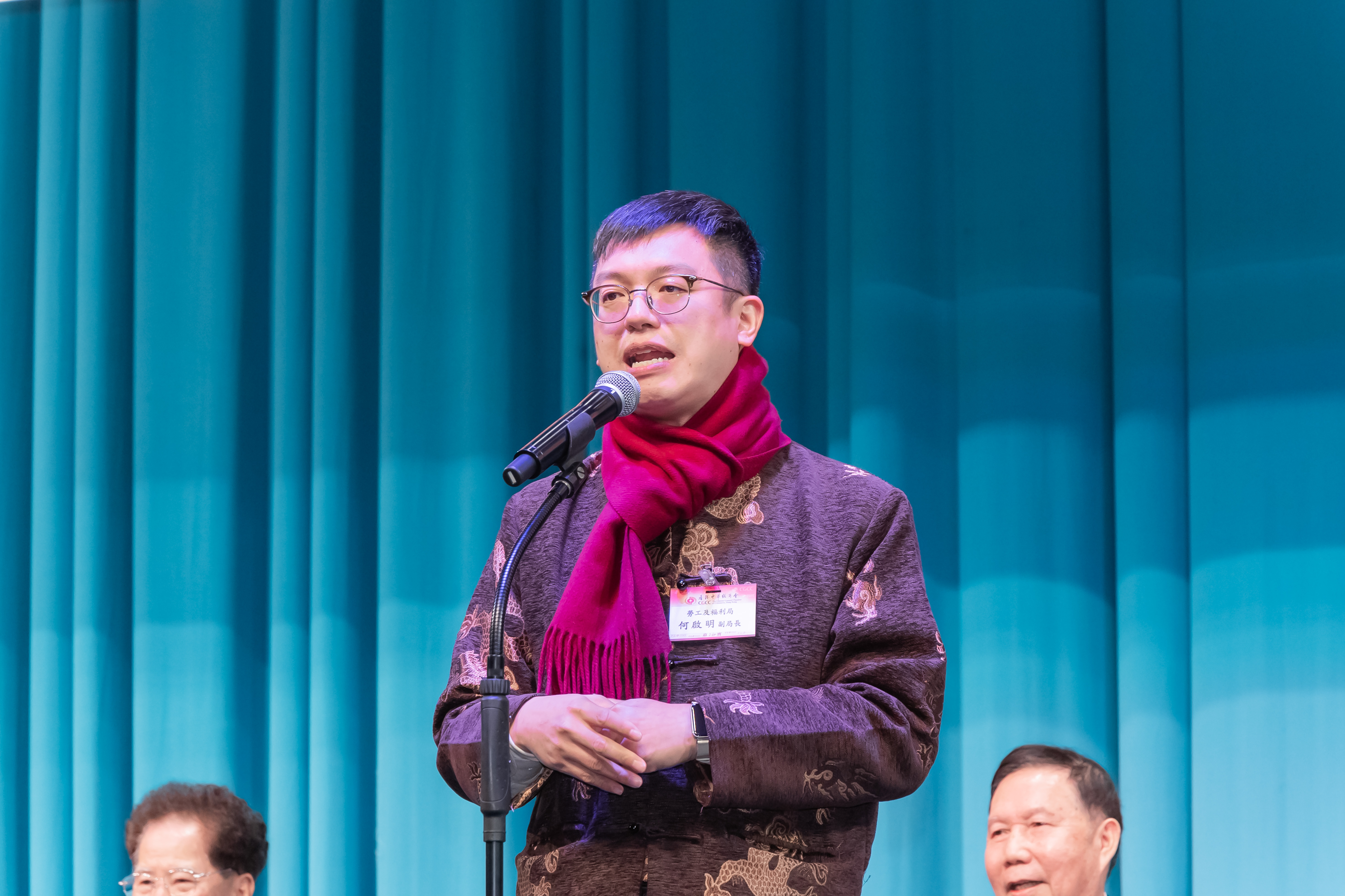 何啟明副局長致詞時讚揚中總一直關心社會民生,是特區政府的重要夥伴,全力配合政府各項改善民生的措施。愛心敬老粵劇晚會籌辦多年,一直深受長者歡迎。新光戲院雖結業在即,期望這份愛心敬老的精神在未來延續,並冀望中總繼續與特區政府攜手合作、推動經濟發展,一同為改善社會民生而努力。