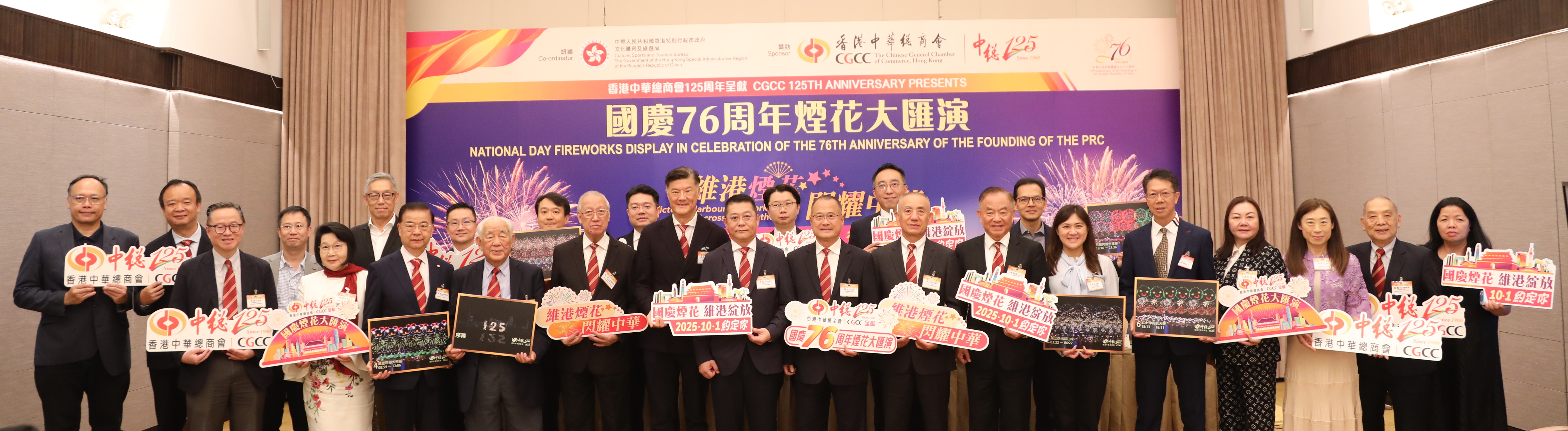 香港中華總商會(中總)將獨家贊助10月1日晚上8時舉行的國慶煙花大匯演,與廣大市民共賀國慶華誕。今年亦欣逢中總成立125周年,是次煙花匯演不僅是對國家輝煌成就的禮讚,更見證該會在一個多世紀以來,與祖國同心、與香港同行。
