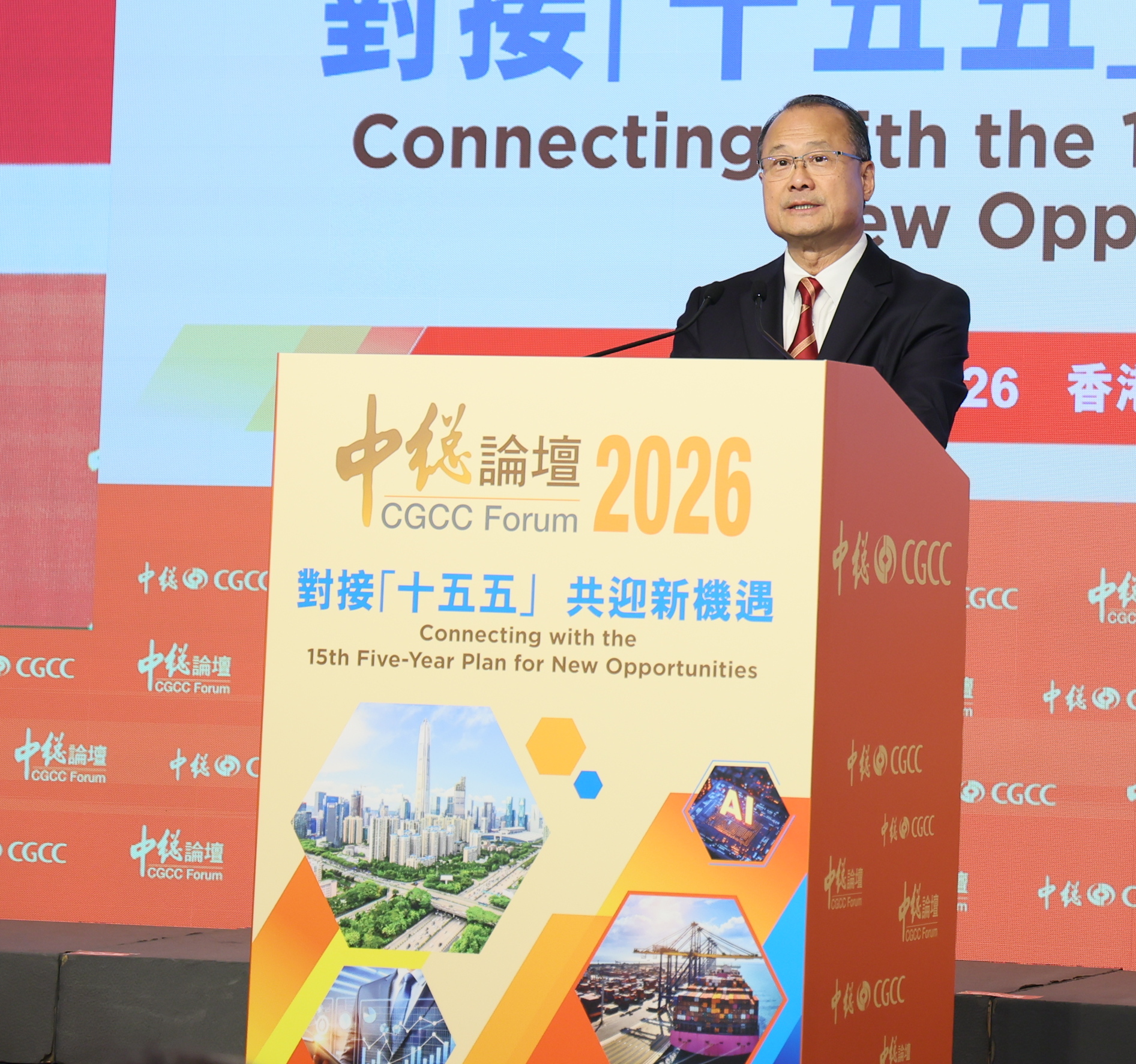 中總蔡冠深會長致辭時指出,今年是國家「十五五」規劃開局之年,中央高度重視香港在國家發展藍圖中的定位,並全力支持香港強化國際金融、航運及貿易中心的角色,推動建設國際創科中心,進一步凸顯香港背靠祖國、聯通世界的重要角色定位。